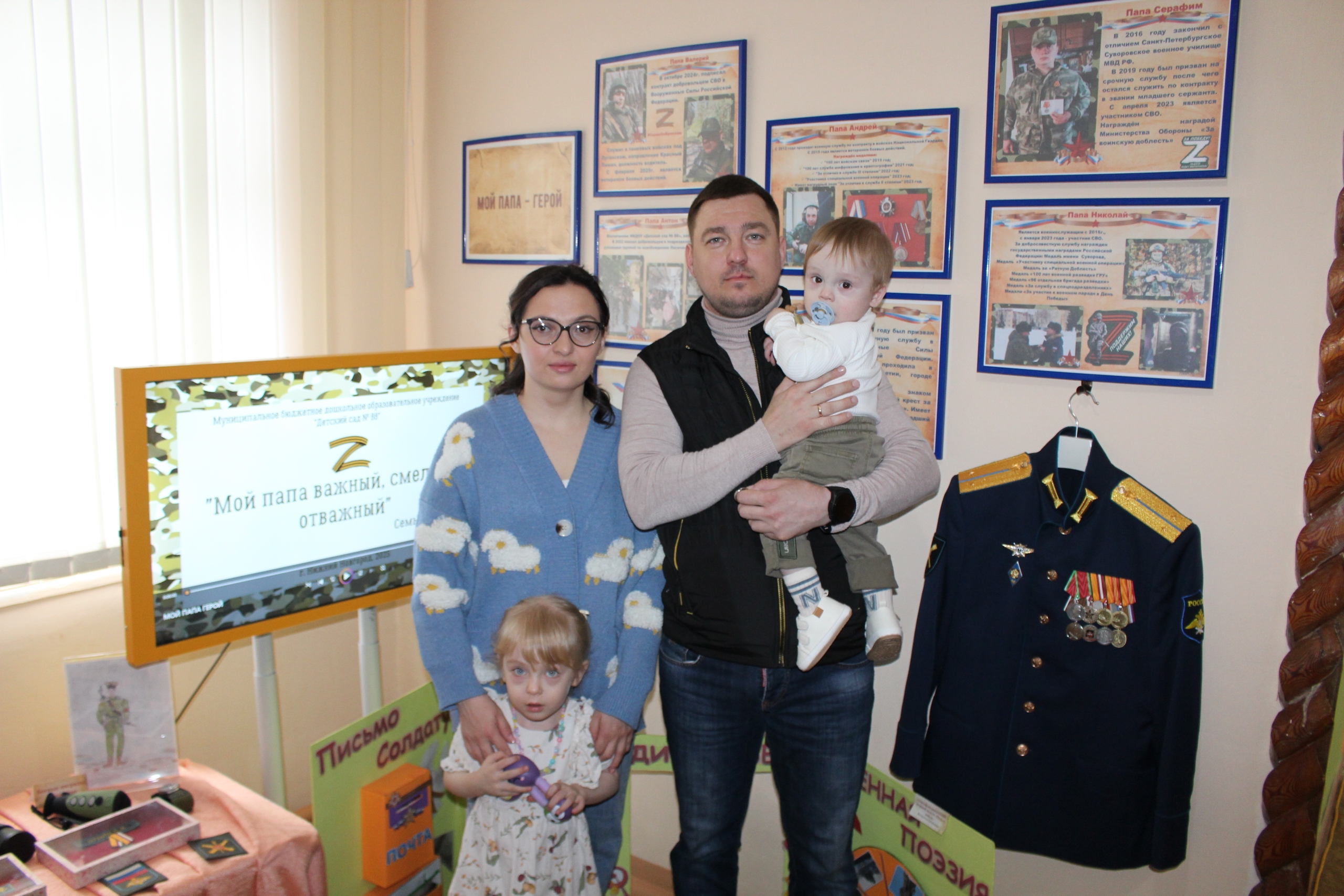 Мы используем самые современные форматы: военные аудиоинсталляции, видеоанимации, интерактивные игровые поля и лэпбуки. Особую гордость представляют подлинные вещи участников ВОВ и СВО, бережно хранимые семьями воспитанников.