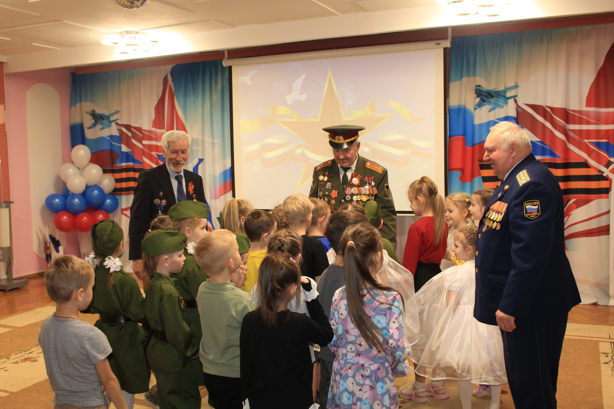 24 февраля в рамках празднования Дня защитника Отечества в МБДОУ «Детский сад №88» была организована встреча трёх поколений: Совет ветеранов, сотрудники, воспитанники и их родители.